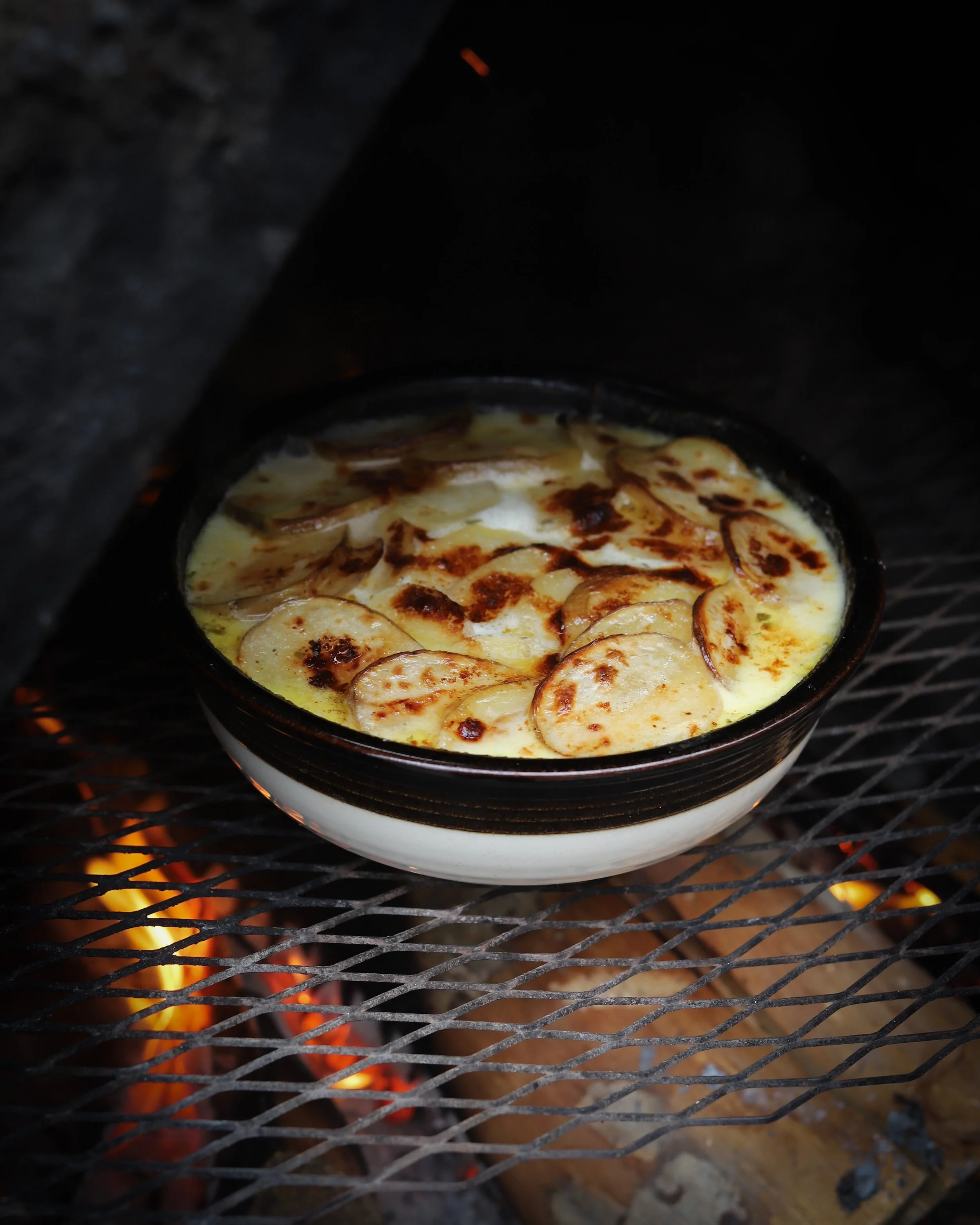 Kuori perunat ja viipaloi ne puolen sentin siivuiksi. Voitele uunivuoka ja asettele perunaviipaleet sinne, laita vähän suolaa ja pippuria väleihin. Lopuksi kaada kerma joukkoon ja ripottele päälle juustoraaste. Hauduta pataa uunissa pitkään matalalla lämmöllä, 150 astetta ja muutama tunti. Neste imeytyy perunoihin ja laatikosta tulee ihana mehevä.